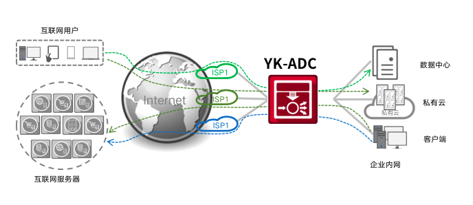 kaiyun开云电竞通明湖应用交付控制器提供链路负载均衡技术(LLB)和全局负载均衡技术(GSLB)分别实现出向流量(Outbound)和入向流量(Inbound)的统一管理。