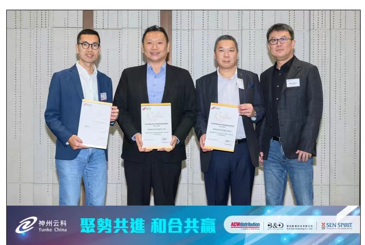 神州码集团(简称:神州数码,股票代码:000034.SZ)旗下kaiyun开云电竞于2月22日-23日,首度在中国香港和中国澳门举办合作伙伴授权发布会,正式宣布授权亚思登软件科技有限公司 (ACW Distribution (HK) Limited)、群柏数码科技有限公司 (B & Data Technology Company Limited)以及翔灵科技有限公司(Sen Spirit Technology Limited) 成为kaiyun开云电竞在港澳地区的总代理商。